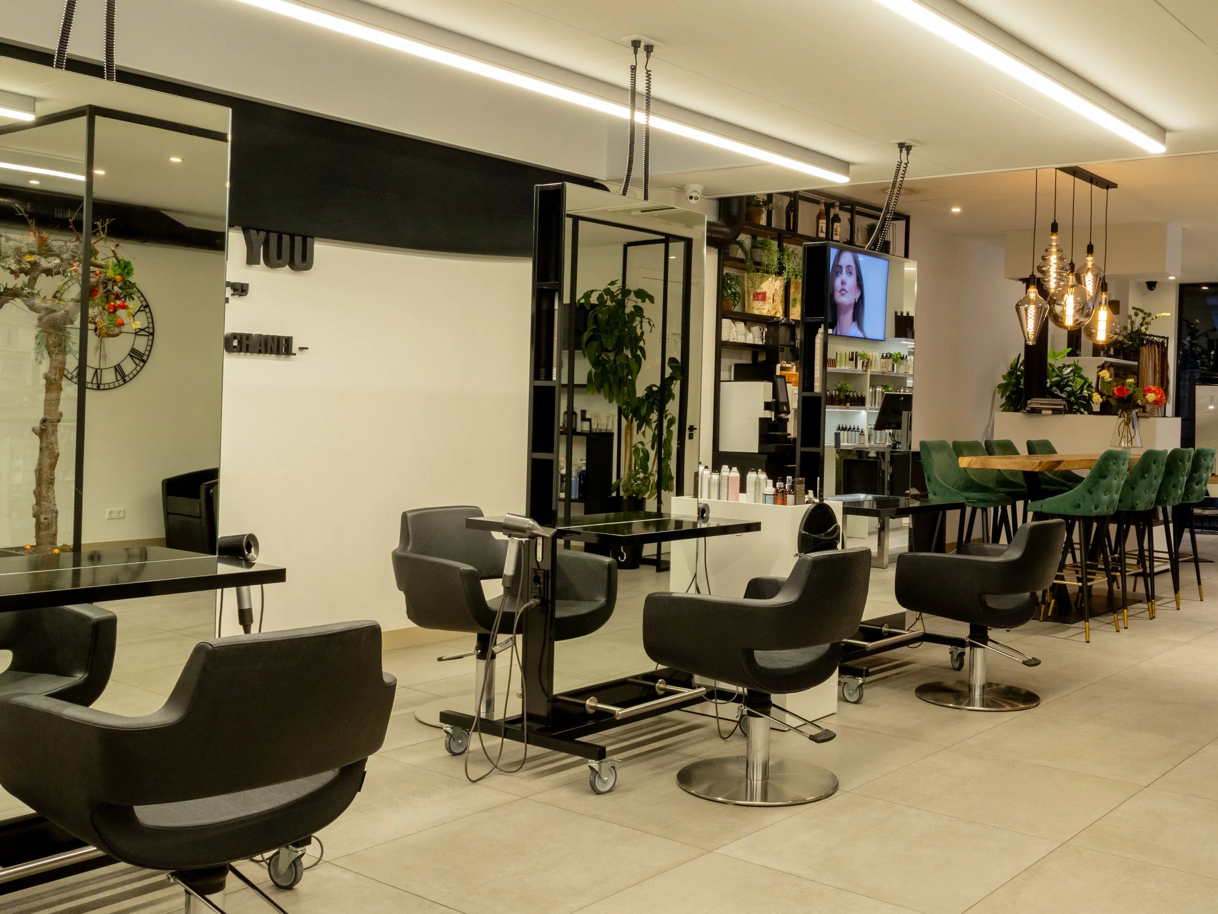 Eerst knippen, kleuring XS (een egale uitgroei verven) wasmassage, stylen extra
